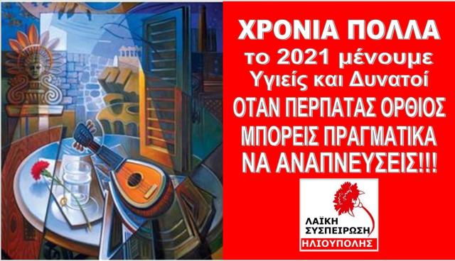 Καλούμε τον λαό και στην πόλη μας το 2021 να ορθώσει το ανάστημά του. Να μην επιτρέψει να τσακίσουν κι άλλο τη ζωή του, να μην αποδεχτεί να πληρώσει και τη νέα κρίση του σάπιου καπιταλιστικού συστήματος, να μην παγιδευτεί στην αναμονή τάχα σωτήριων κρατικών παρεμβάσεων.