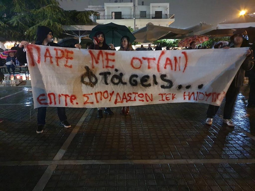 Δεν στάθηκε ικανή ούτε η βροχή να εμποδίσει τη μεγάλη προσέλευση του κόσμου για να διατρανώσει ότι «Δεν είναι η ώρα της σιωπής, είναι η ώρα της φωνής και του αγώνα». Για λίγη ώρα η συγκέντρωση μεταφέρθηκε στο αναψυκτήριο του δήμου λόγω της δυνατής βροχής, με τον κόσμο να συρρέει διαρκώς και να επιστρέφουν πάλι πίσω για να συνεχίσουν τη διαμαρτυρία.