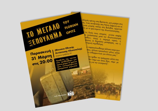 Οι ΚΟ Ηλιούπολης του ΚΚΕ σας προσκαλούν στη προβολή ταινίας, «Το Μεγάλο Ξεπούλημα» του Florian Οpitz, στις 31 Μάρτη 2023 και ώρα 20:00 στο Μουσείο Εθνικής Αντίστασης Ηλιούπολης.