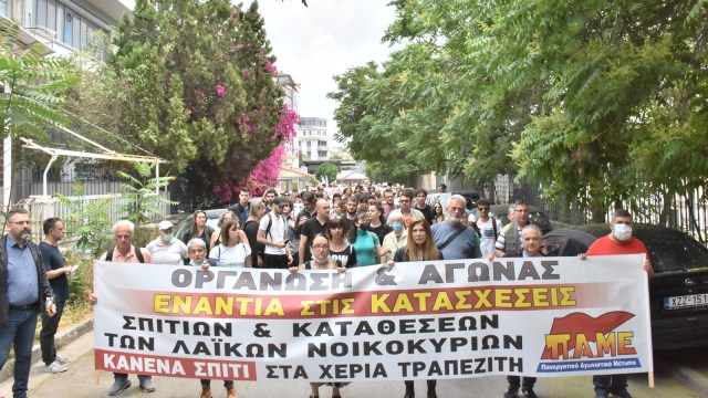 «Η κάθε γειτονιά -υπογράμμισε ο Β. Συρίγος- θα γίνει κάστρο του αγώνα. Η αλληλεγγύη θα νικήσει αυτό που προσπαθούν να κάνουν. Να πηγαίνει ο καθένας μόνος του και να διαπραγματεύεται εκτεθειμένος στα κοράκια. Όλοι μαζί μπορούμε να τα καταφέρουμε. Ισχυρό λαϊκό κίνημα, ισχυρή αντίσταση στις γειτονιές, κανένα σπίτι στα χέρια τραπεζίτη», κατέληξε ο Β. Συρίγος, με τους συγκεντρωμένους να βροντοφωνάζουν, «Κανένα σπίτι στα χέρια τραπεζίτη».