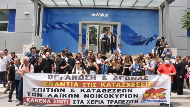 Στην κινητοποίηση στη Dovalue συμμετείχαν ο Γιάννης Πρωτούλης, μέλος του ΠΓ της ΚΕ του ΚΚΕ και ο Γιώργος Πέρρος, από τη Γραμματεία του ΠΑΜΕ.