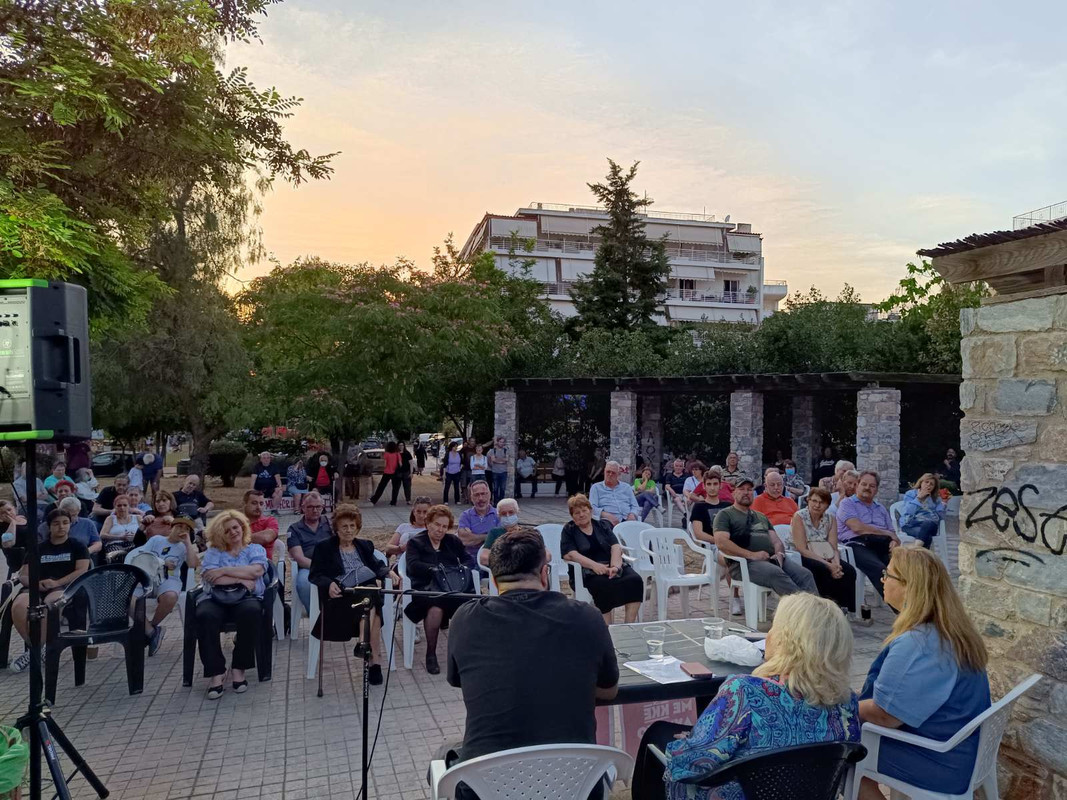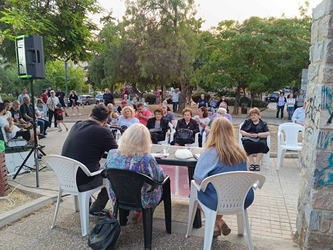 Την Παρασκευή 9 Ιουνίου πραγματοποιήθηκε σύσκεψη-συζήτηση στην πλατεία Βεάκη στην Ηλιούπολη από την ΚΟΒ Αγίου Κωνσταντίνου, με τη Σεμίνα Διγενή, βουλευτή του ΚΚΕ και εκ νέου υποψήφια στον Νότιο Τομέα και τον Άρη Πλωμαρίτη, μέλος της Επιτροπής Περιοχής της ΚΟΑ.
