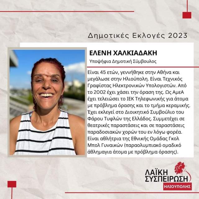 Θέλω να πορευτώ, να αγωνιστώ μαζί με τη Λαϊκή συσπείρωση, που είναι δύναμη αισιοδοξίας και ελπίδας για καλύτερη ζωή όλων,για τις ανάγκες των πολλών και όχι για τα κέρδη των λίγων.