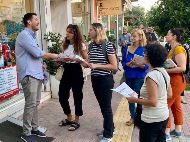 Την Τρίτη 12 Σεπτέμβρη κλιμάκιο της Λαϊκής Συσπείρωσης με επικεφαλής τον Αλέξανδρο Μπουγά, υποψήφιο Δήμαρχο Ηλιούπολης, περιόδευσε στα μαγαζιά της λεωφόρου Ειρήνης.