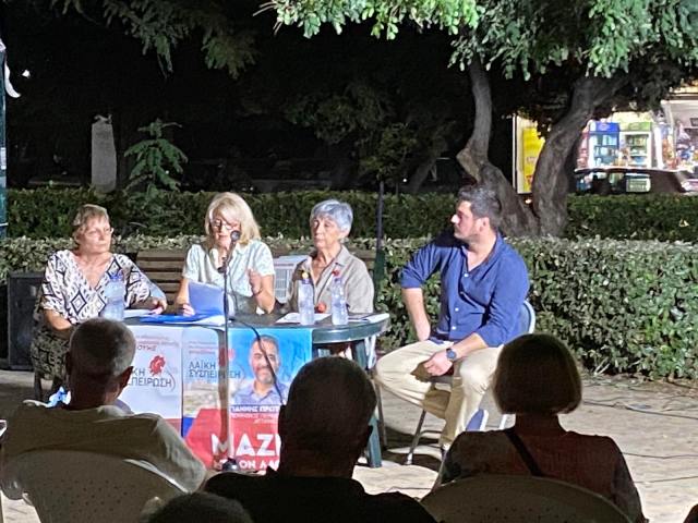 Επιτυχημένη ήταν η εκδήλωση-σύσκεψη της Λαϊκής Συσπείρωσης Ηλιούπολης που έγινε στην πλατεία Σικελιανού την Κυριακή 24 Σεπτεμβρίου.