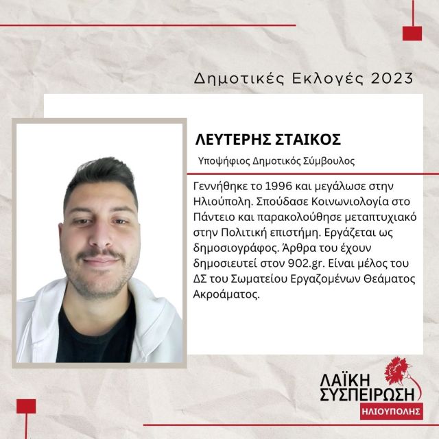 του Λευτέρη Στάικου, δημοσιογράφου, Υποψηφίου Δημοτικού συμβουλίου με τη Λαϊκή Συσπείρωση Ηλιούπολης