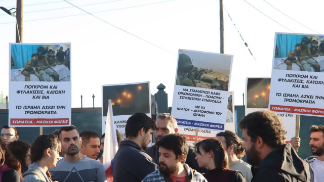 Απαίτησαν και με αυτή την κινητοποίηση να σταματήσει η εμπλοκή της χώρας, να σταματήσει η σφαγή του παλαιστινιακού λαού στη Γάζα.