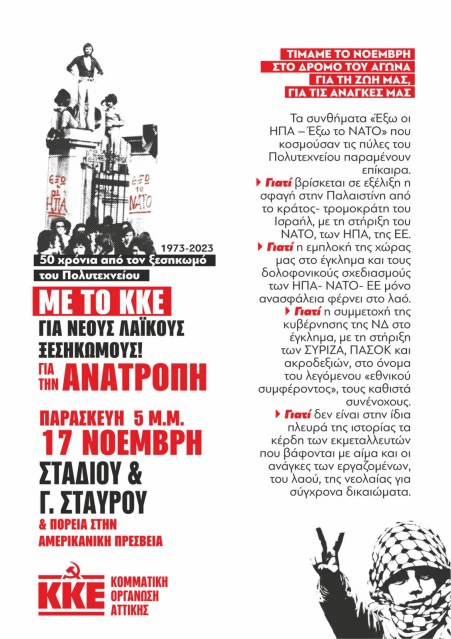 Τα διδάγματα του Νοέμβρη, δύναμη στους αγώνες του σήμερα για την ανατροπή!
