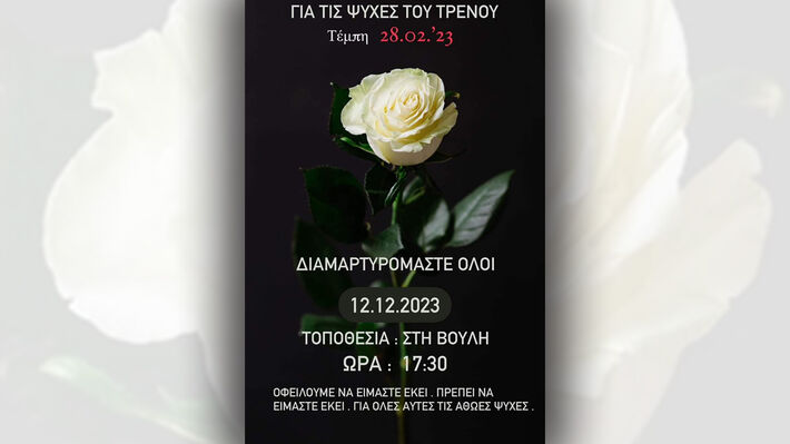 Οι συγγενείς των θυμάτων του σιδηροδρομικού εγκλήματος των Τεμπών, με τους 57 νεκρούς, νέους ως επί το πλείστον ανθρώπους και πολλούς βαριά τραυματισμένους, διοργανώνουν συγκέντρωση σήμερα Τρίτη 12 Δεκέμβρη στις 5.30 μ.μ., στο Σύνταγμα, μπροστά στη Βουλή.