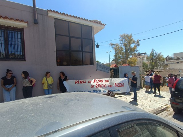 Από την πρώτη στιγμή κάτοικοι της περιοχής , μέλη μαζικών φορέων και σωματείων, καθώς και μέλη του του ΚΚΕ βρίσκονται στο χώρο και εμποδίζουν τις δυνάμεις καταστολής να πάρουν την περιουσία του λαού.