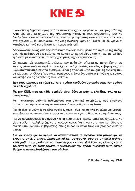 Με την ΚΝΕ, που σε κάθε σχολείο είναι δύναμη μάχης, ελπίδας, αγώνα και ανατροπής!