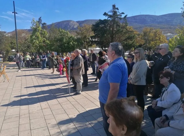 Δεύτερος σταθμός ήταν ανήμερα τις 28 Οκτώβρη στο μνημείο της Εθνικής Αντίστασης. Οι οργανώσεις του ΚΚΕ και της ΚΝΕ και το παράρτημα Ηλιούπολης της ΠΕΑΕΑ -ΔΣΕ κατέθεσαν στεφάνια και διοργανώθηκε εκδήλωση με αφηγήσεις ποιημάτων και τραγούδια. Ξεχωριστή στιγμή της εκδήλωσης, η συντρόφισσα Αθηνά Λάτση, η οποία διάβασε αποσπάσματα από το βιβλίο της, το οποίο πρόκειται να εκδοθεί το επόμενο διάστημα.