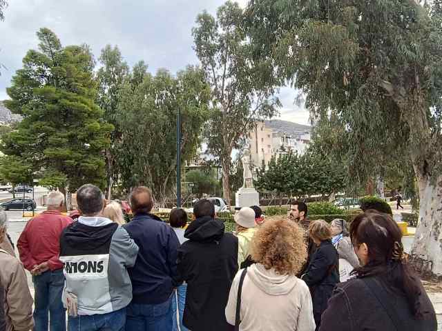Στην αρχή, σύντομο χαιρετισμό απεύθυνε ο Αλέξανδρος Μπουγάς, Γραμματέας της Τομεακής Οργάνωσης Ανατολικών Συνοικιών της ΚΟΑ του ΚΚΕ, ενώ την ξενάγηση ανέλαβε ο Σπύρος Παπανικολάου, Γραμματέας της ΚΟΒ Κέντρου Ηλιούπολης.