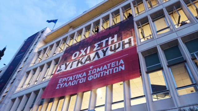 Συνδικάτα και Φοιτητικοί Σύλλογοι έχουν στολίσει μάλιστα με γιγαντοπανό την κεντρική πρόσοψη του ραδιομεγάρου της ΕΡΤ στέλνοντας το μήνυμα «Όχι στην συγκάλυψη, όχι στο μαύρο της ΕΡΤ απέναντι σε εργατικούς και λαϊκούς αγώνες».