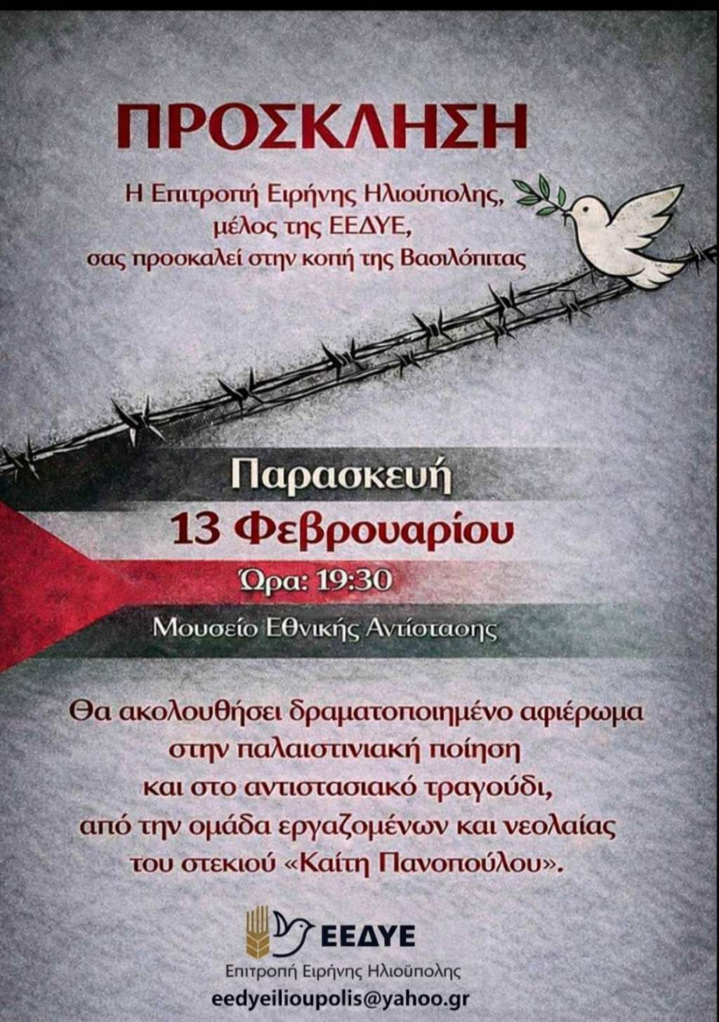 Κοπή πίτας σήμερα από την Επιτροπή Ειρήνης Ηλιούπολης